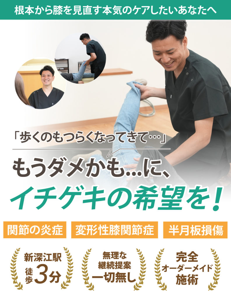 40代〜70代の方を中心に、膝・股関節・腰・肩の慢性痛で悩んでいる方が多く来られています。 また「手術を避けたい」「薬に頼りたくない」と考える方や、部活中の学生さんも通っています。